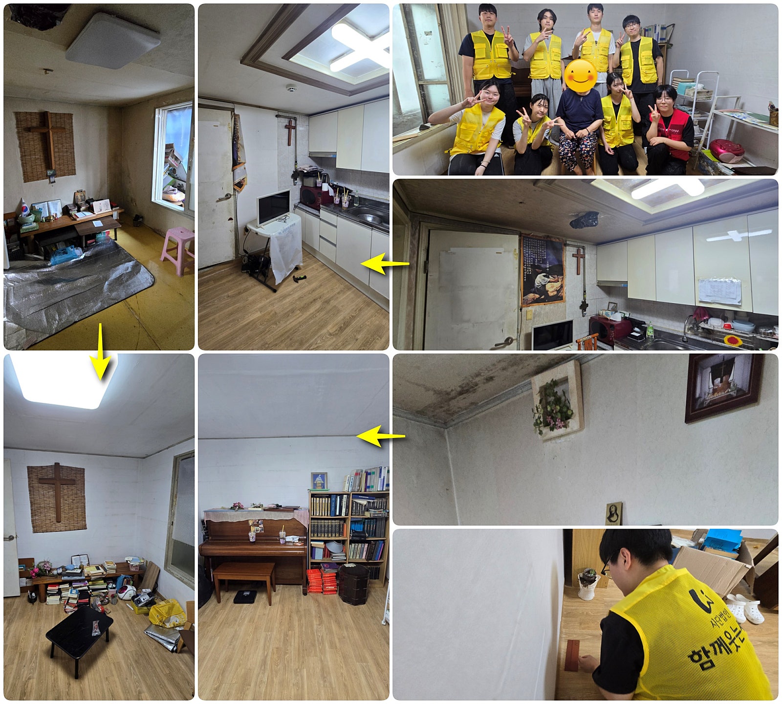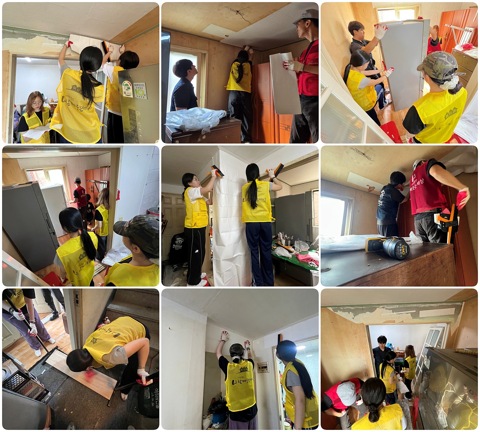 봉사자들은 도배와 장판 교체, LED등 설치, 청소와 정리 등 다양한 작업을 맡아 각 가정의 생활공간을 새롭게 단장했습니다. 작은 손길이 모여 집은 한층 더 안전하고 쾌적한 공간으로 변했고, 주민들의 일상에도 새로운 희망이 스며들었습니다.