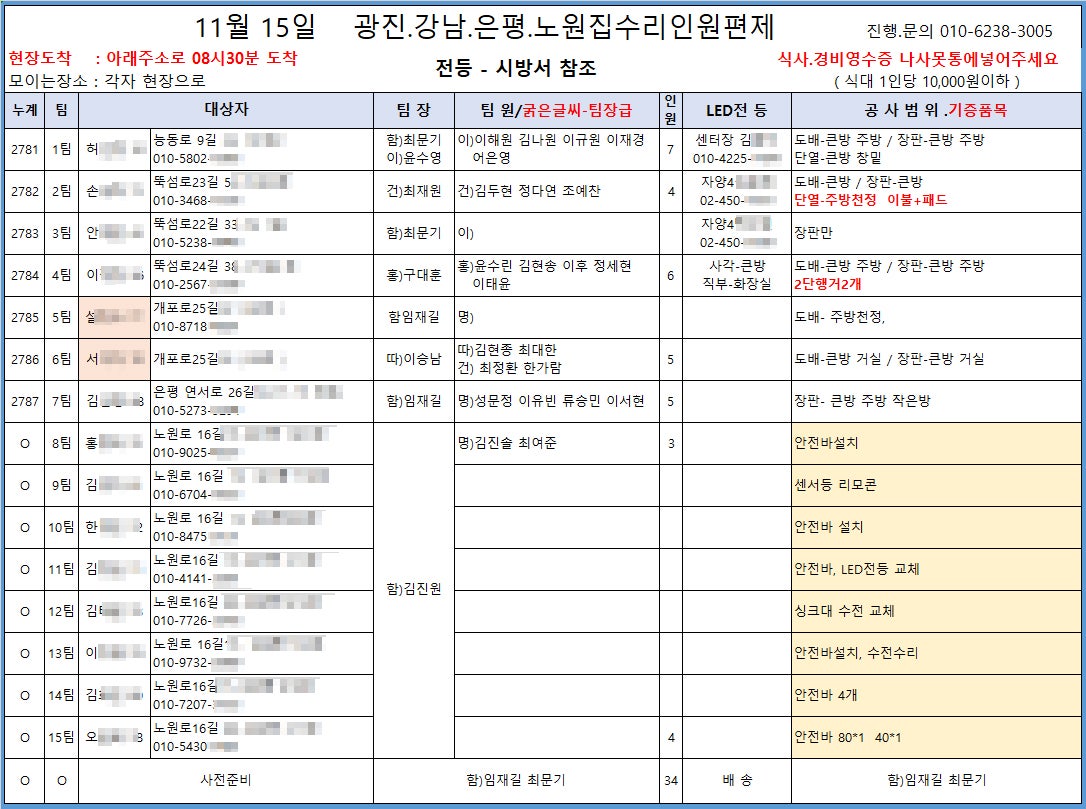 11월 15일, 함께웃는세상은 광진·강남·은평·노원구에서 총 15가구의 집수리를 진행했습니다.