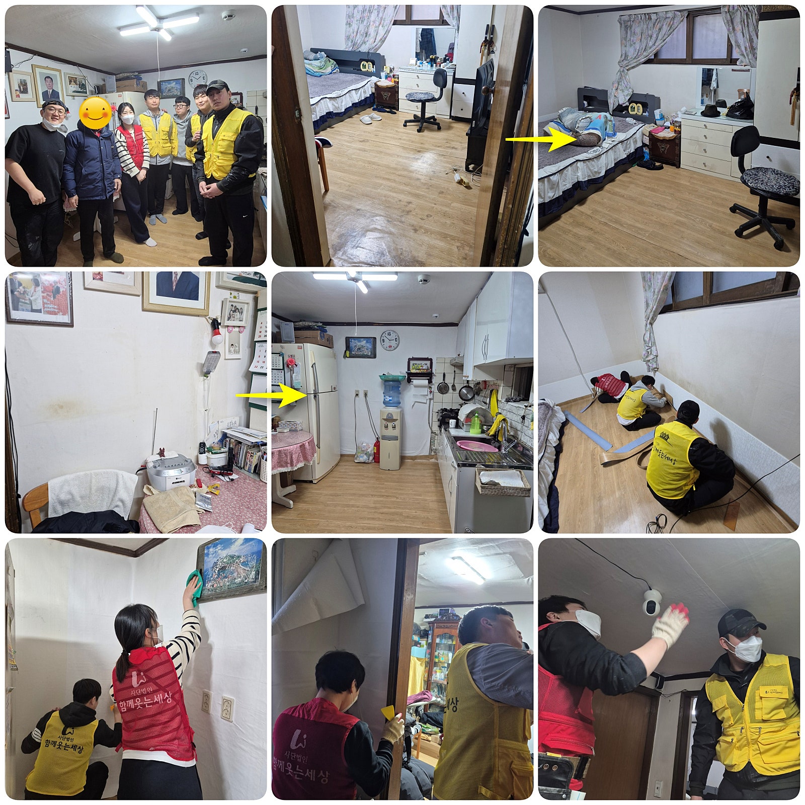 1월 24일, 함께웃는세상은 금천구·은평구·강남구 취약계층 8가구를 대상으로 집수리 및 주거환경 개선 봉사활동을 진행했습니다.
