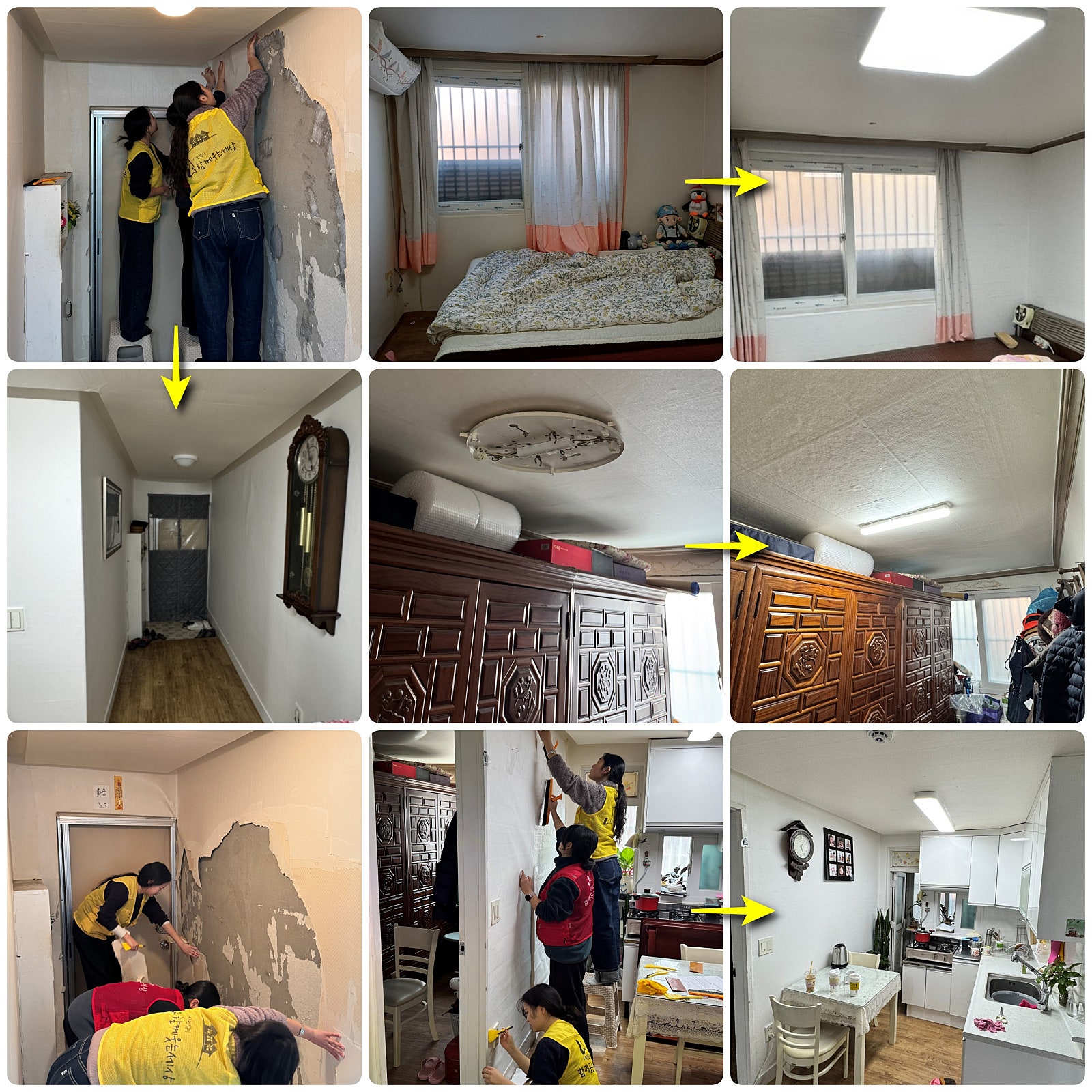 낡은 벽지와 차가운 바닥, 어두운 조명 아래에서 생활하던 공간은 도배와 정리, 생활 안전 중심의 수리를 통해 다시 숨을 쉬기 시작했습니다.