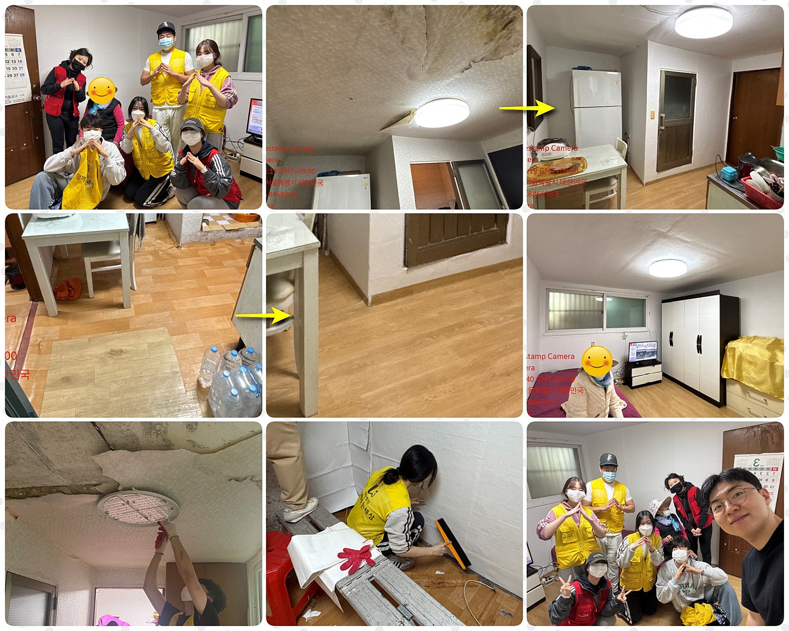 이에 봉사팀은 모든 방의 도배와 장판 교체를 비롯해 단열벽지 시공, LED 전등 5개 교체, 안전손잡이 2개 설치 등 전반적인 주거환경 개선 작업을 진행하였습니다.