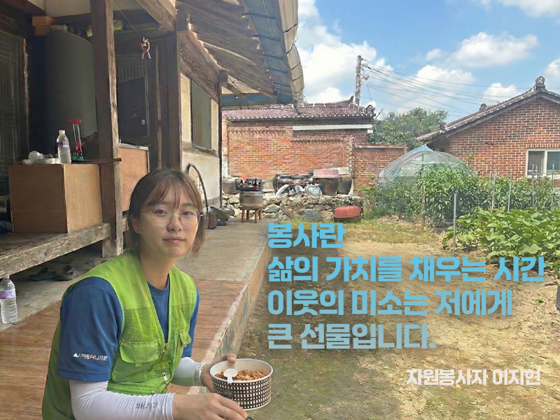 단순히 쉬는 것보다 누군가를 돕고나면 오히려 정신적인 피로가 풀리고, 새로운 활력을 얻습니다. 나만을 위한 휴식보다 함께하는 가치를 실천할때 얻는 뿌듯함이야 말로...