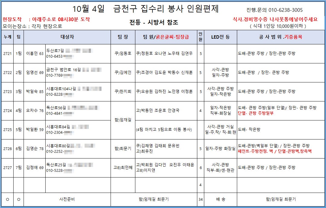 추석 연휴가 시작되는 시기임에도 불구하고 어려운 이웃을 위해 시간을 내어주신 모든 봉사자분들께 진심으로 감사드립니다. 여러분의 따뜻한 손길이 모여 더 안전하고 쾌적한 보금자리가 만들어졌고, 그 마음이 이웃들에게 큰 힘이 되었습니다.