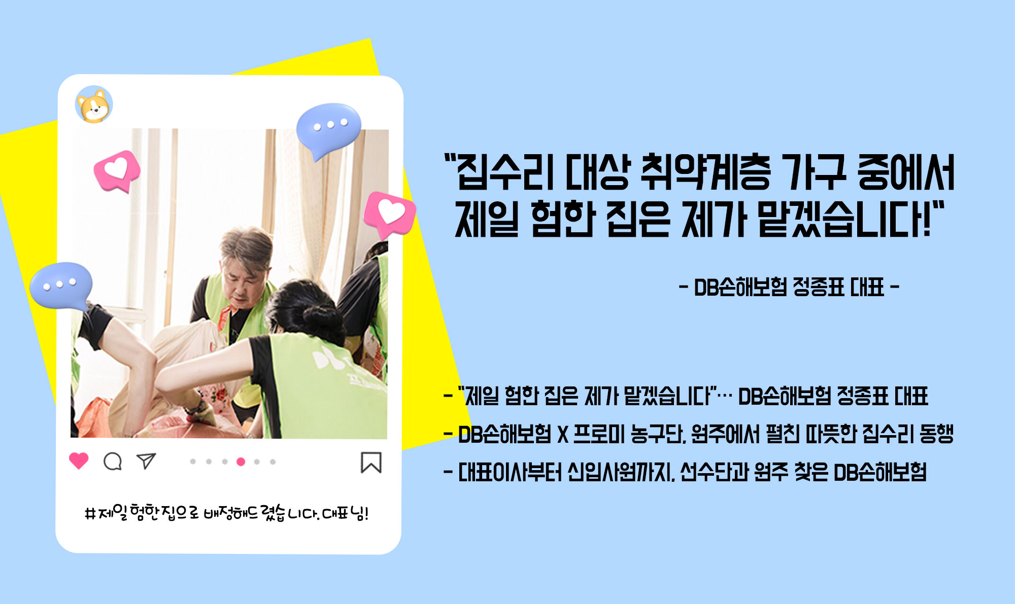 궂은일을 자처한 이 목소리의 주인공은 다름 아닌 DB손해보험 정종표 대표이사였습니다.